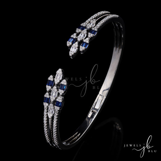 Premium Octa Setting Hydro Blue Sapphire Broad Bridal Zina Openable Kada Bracelet