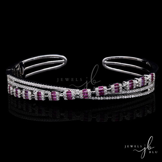 Premium American Diamond Baguette Pressure Setting Bridal Sia Openable Kada Bracelet with Ruby Detailing