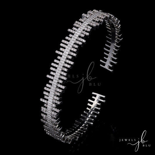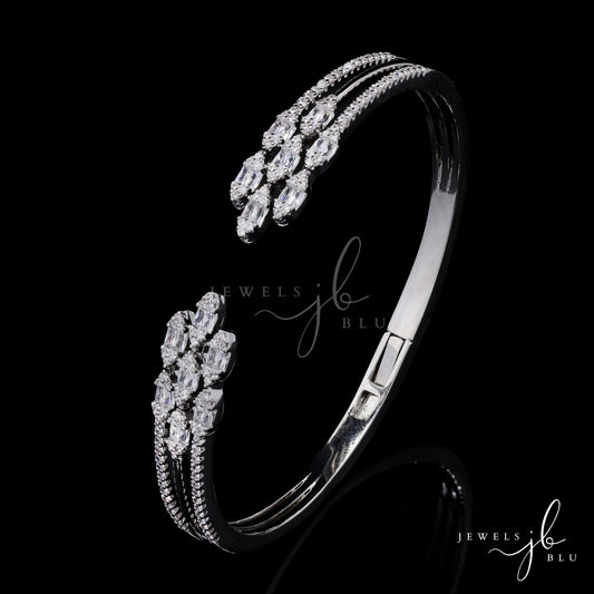 Premium American Diamond Zebra Openable Bracelet with Double Line Diamond Cluster