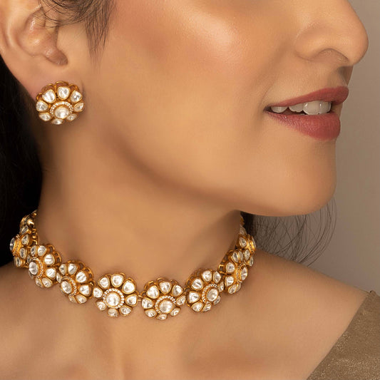Uncut 2 Lines Polki Statement Necklace With Earring Set