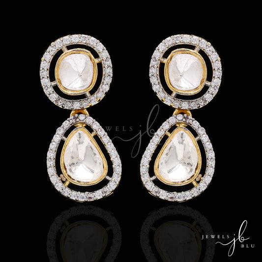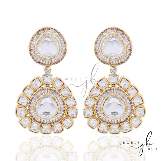 Antique Gold Finish Drop Polki Harita Long Earrings