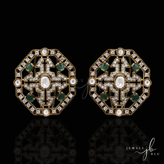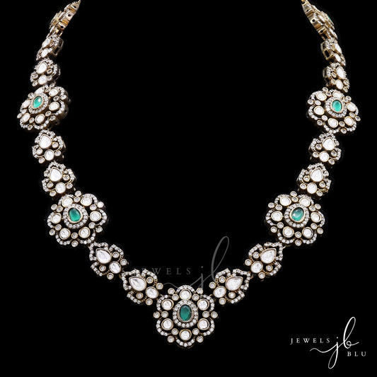 Antique Finish Classic Polki Festive Mayra Necklace Set with Emerald Detailing