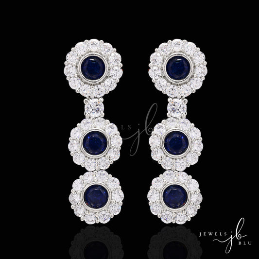 Blue Sapphire and Diamond Premium Party Choker Necklace Set with Earrings