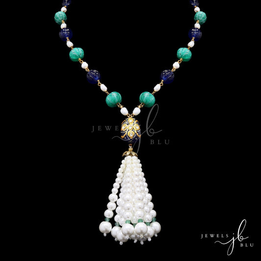 Pearl and Emerald Antique Finish Kundan Polki Long Necklace Haar