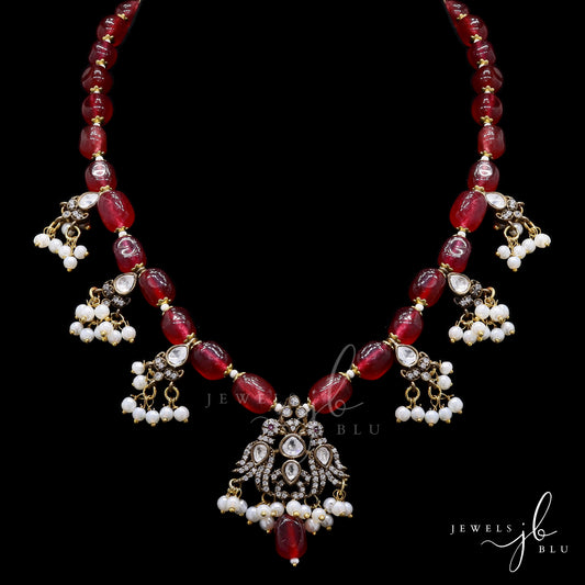 Antique Finish Temple Style Polki Ruby Gitanjali Necklace Set