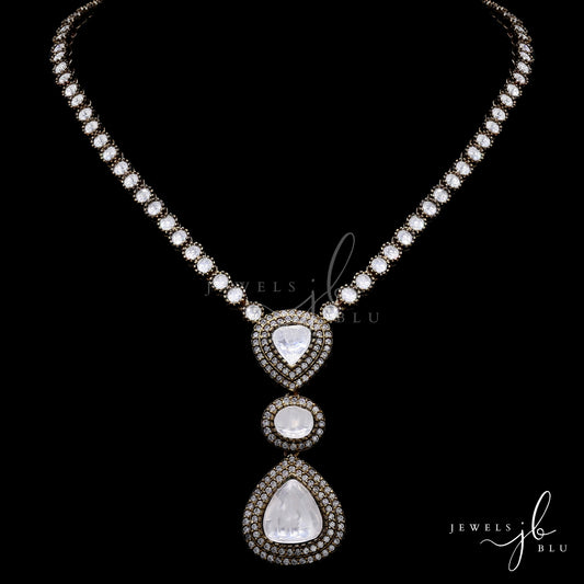 Antique Finish 3 Line Pearl and Polki Haar Necklace