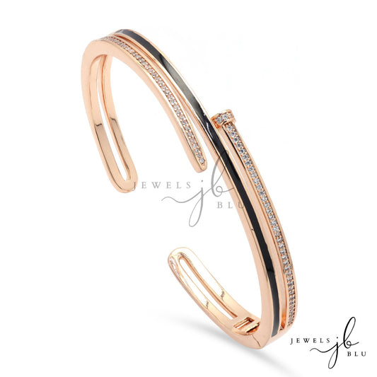 Premium Rose Gold Finish Three Line Nexa Openable Bracelet with Black Enamel Detailing