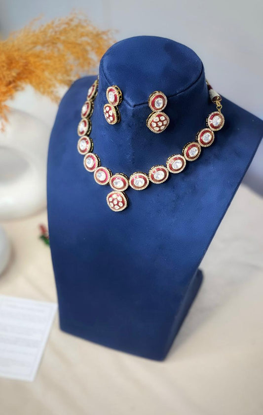 Ruby Enamel Polki Diya Bridal Necklace Set