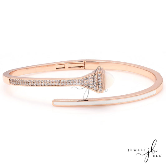 Premium Rose Gold Finish Foxy Openable Bracelet with White Enamel Detailing