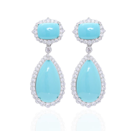 Turquoise Blue American Diamond Studded Premium Lara Party Earrings