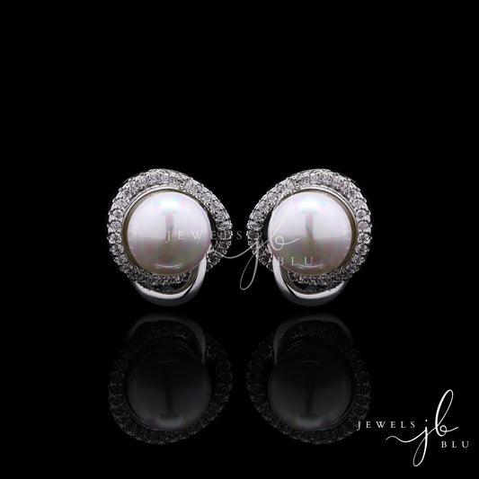 American Diamond Curvy Delna Fresh Water Pearl Studs