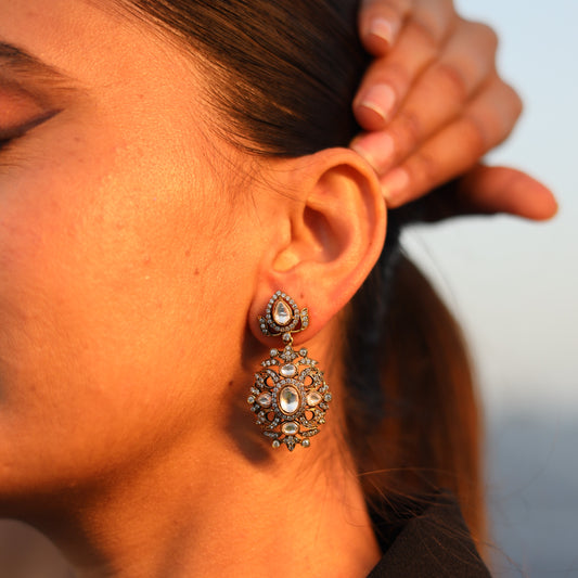 Antique Finish Kundan Polki Maharani Earrings