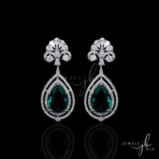 Hydro Emerald Carmine Party Earrings with American Diamond