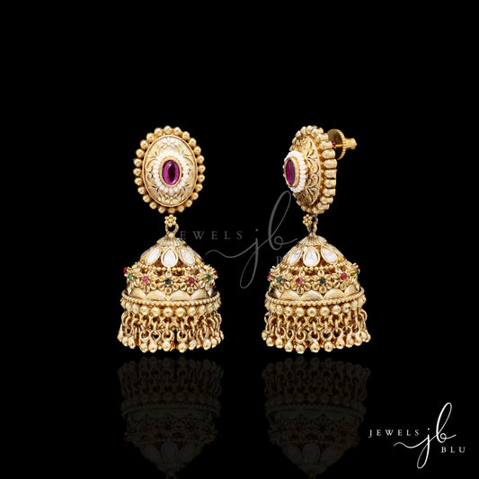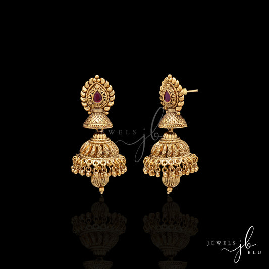 Festive Exclusive Gold Finish Double Layer Nitya Jhumki with Ruby Detaling