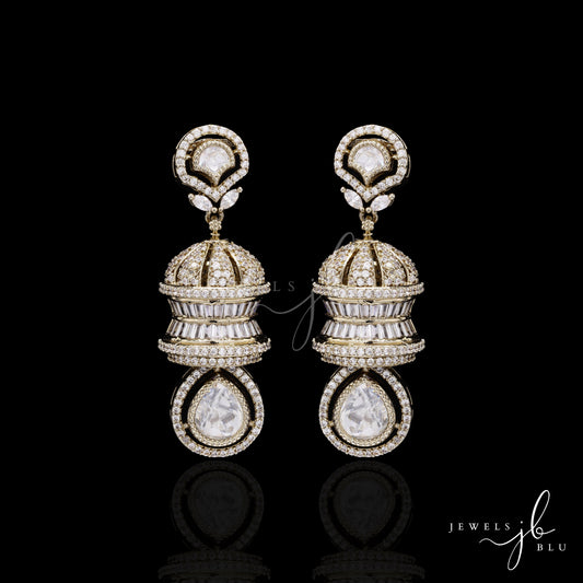 Festive Exclusive Antique Gold Finish 3 Layered Premium Moissanite Polki Jhumki Earrings