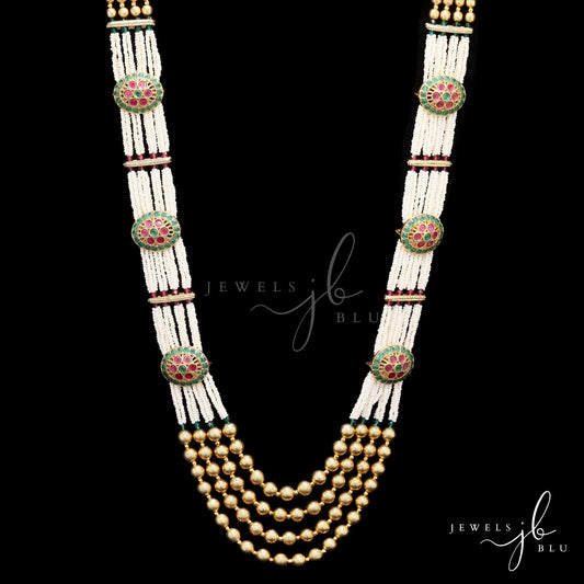 Festive Exclusive 4 Layer Antique Gold Finish Moti Ghungroo Layered Necklace Set with Earrings
