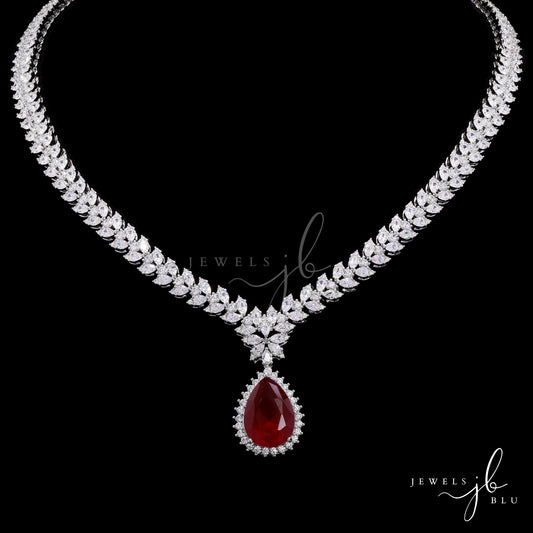 • Premium Ruby and Marquise Diamond Beyonce Necklace Set with Earrings