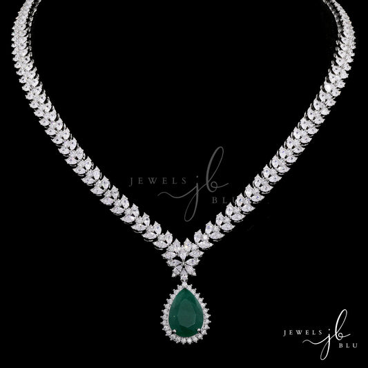 • Premium Emerald and Marquise Diamond Beyonce Necklace Set with Earrings
