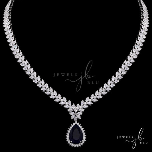 • Premium Blue Sapphire and Marquise Diamond Beyonce Necklace Set with Earrings