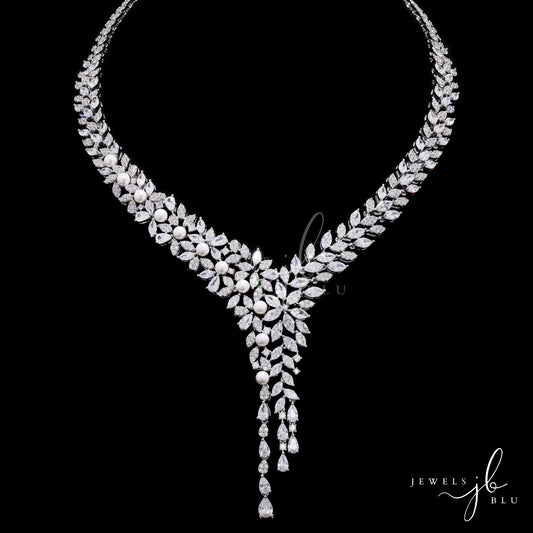 • Premium Solitaire Pointer and Octa Setting Yuvi Bridal Necklace Set with Earrings