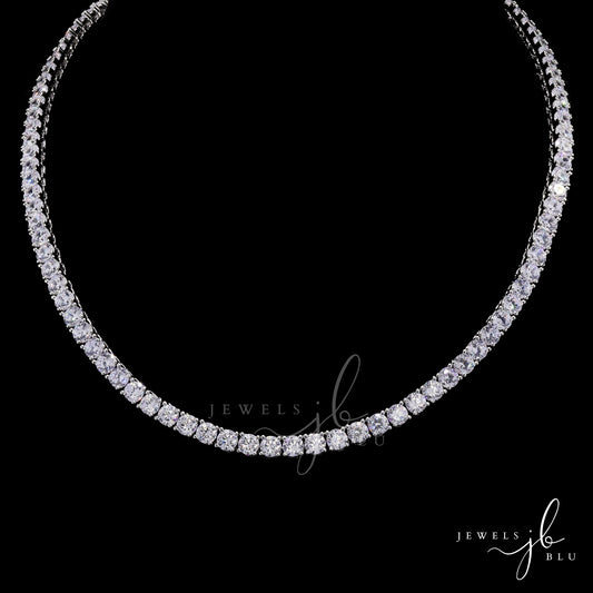 • Premium Solitaire Single Line Necklace Set with Earrings in White Gold Finish