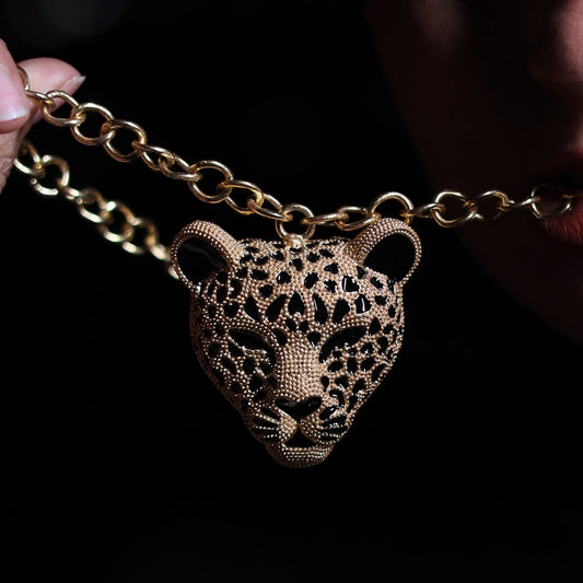 Gold Finish Tiger Face Link Long Necklace