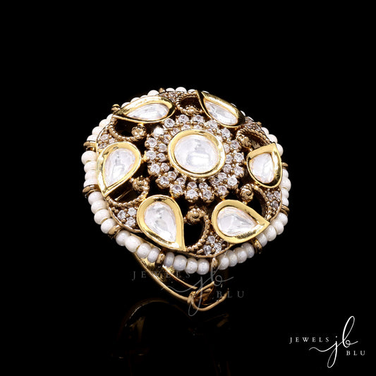 Polki Antara Pearl Adjustable Ring ( Fits all Sizes )