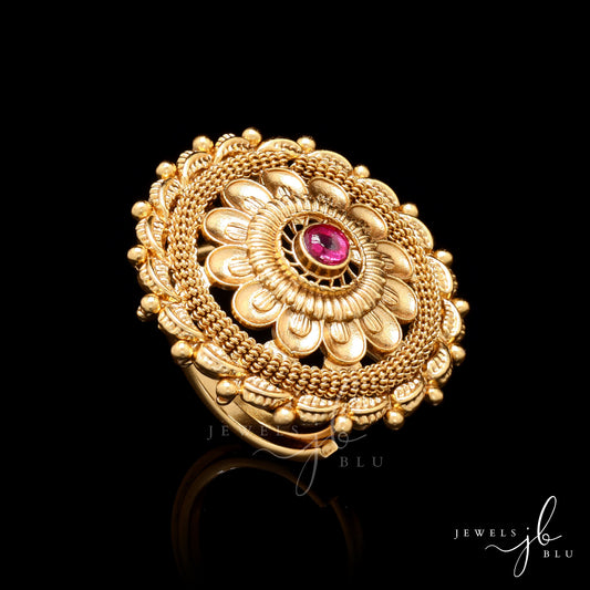 Kumari Gold Finish Traditional Adjustable Ring (Fits All Sizes )