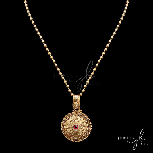 Festive Exclusive Gold Finish Classic Round Necklace Set with Ruby Detailing Includes Earrings