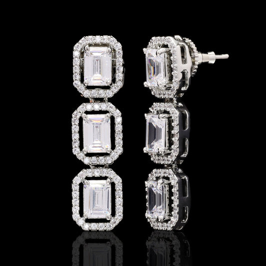 Emerald Cut Solitaire Single Line Necklace Set with Earrings