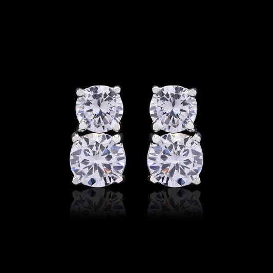 Premium Solitaire Single Line Necklace Set with Earrings in White Gold Finish