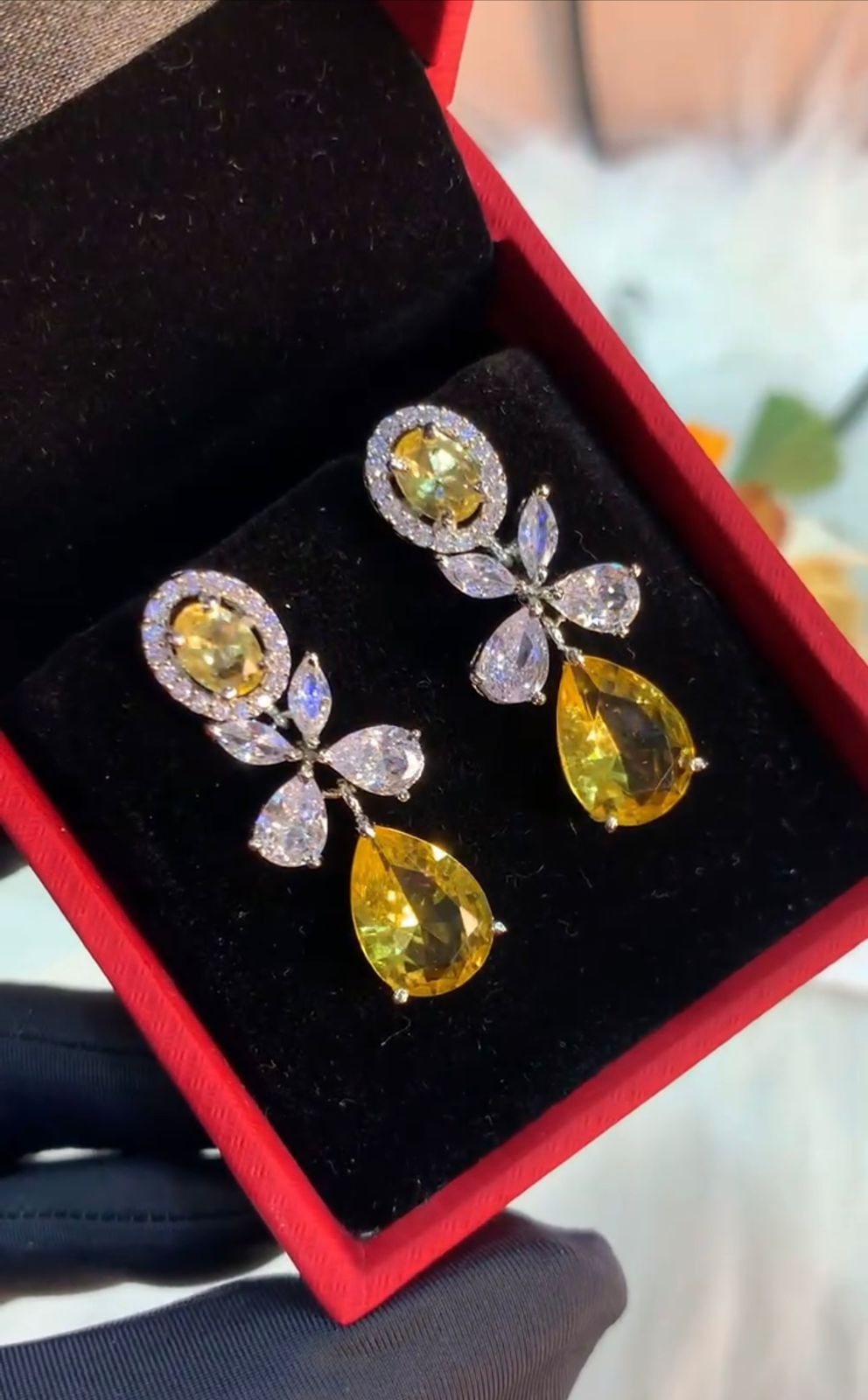 Alloha Diamond Yellow Crystal Diva Danglers Earrings