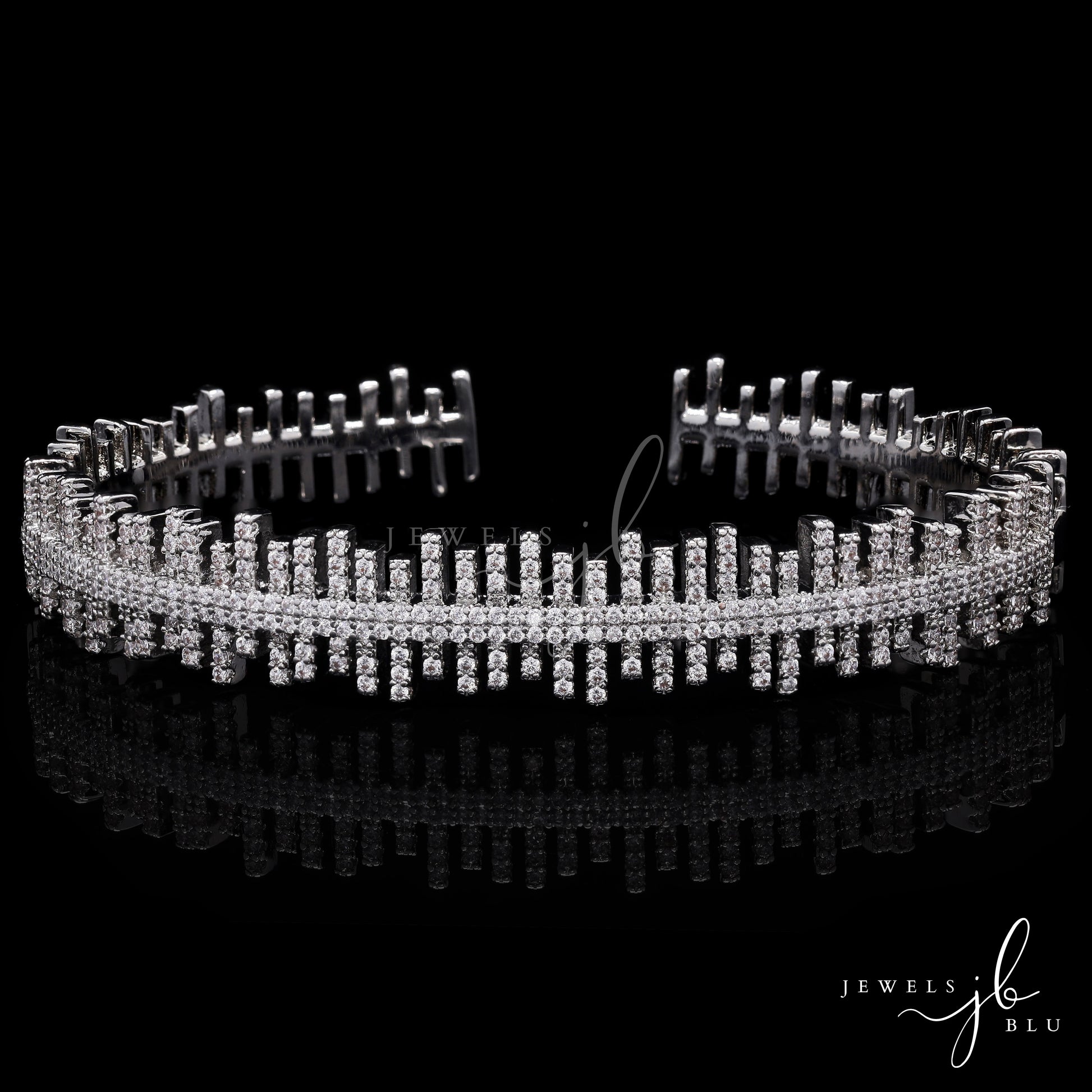 Premium American Diamond Zebra Openable Bracelet with Double Line Diamond Cluster