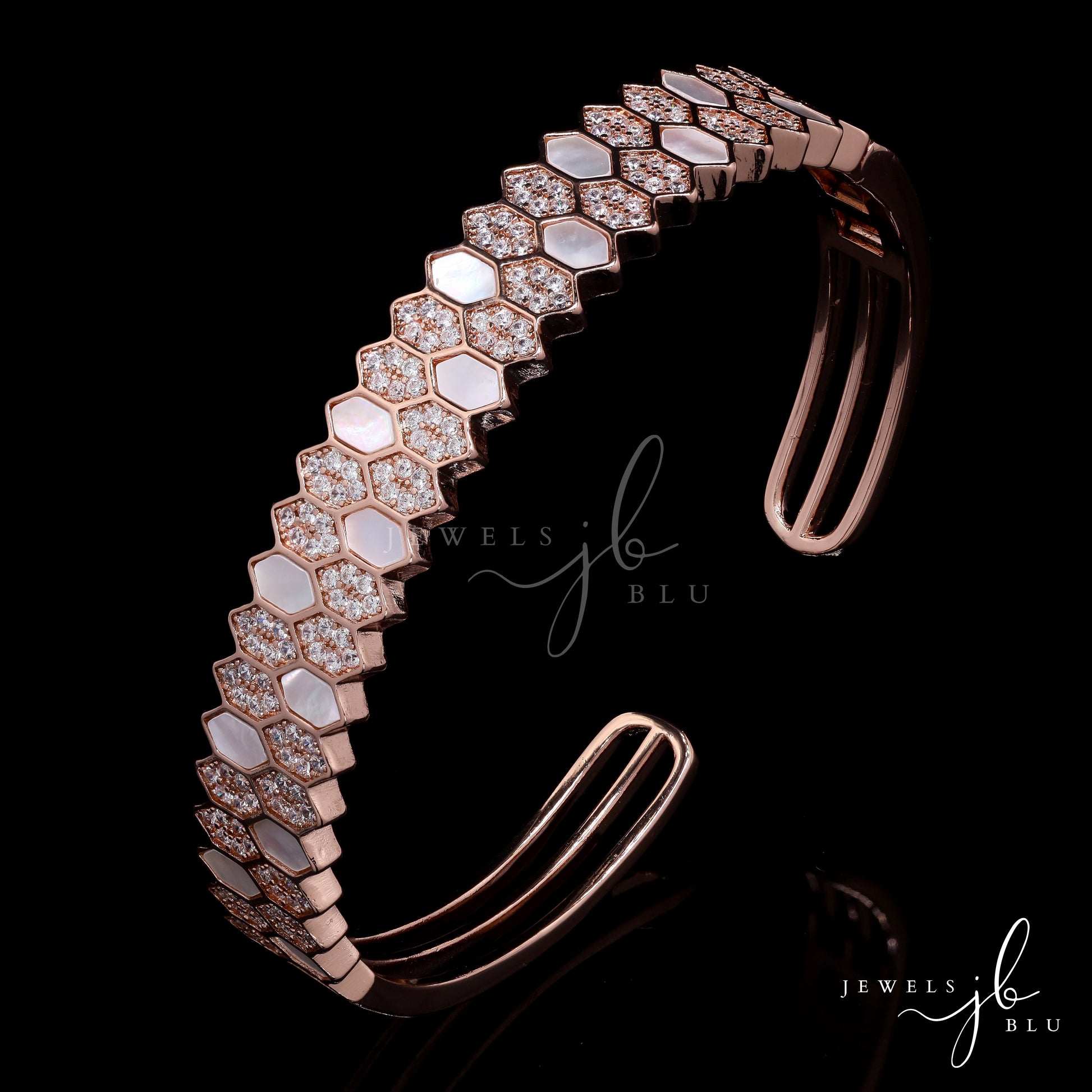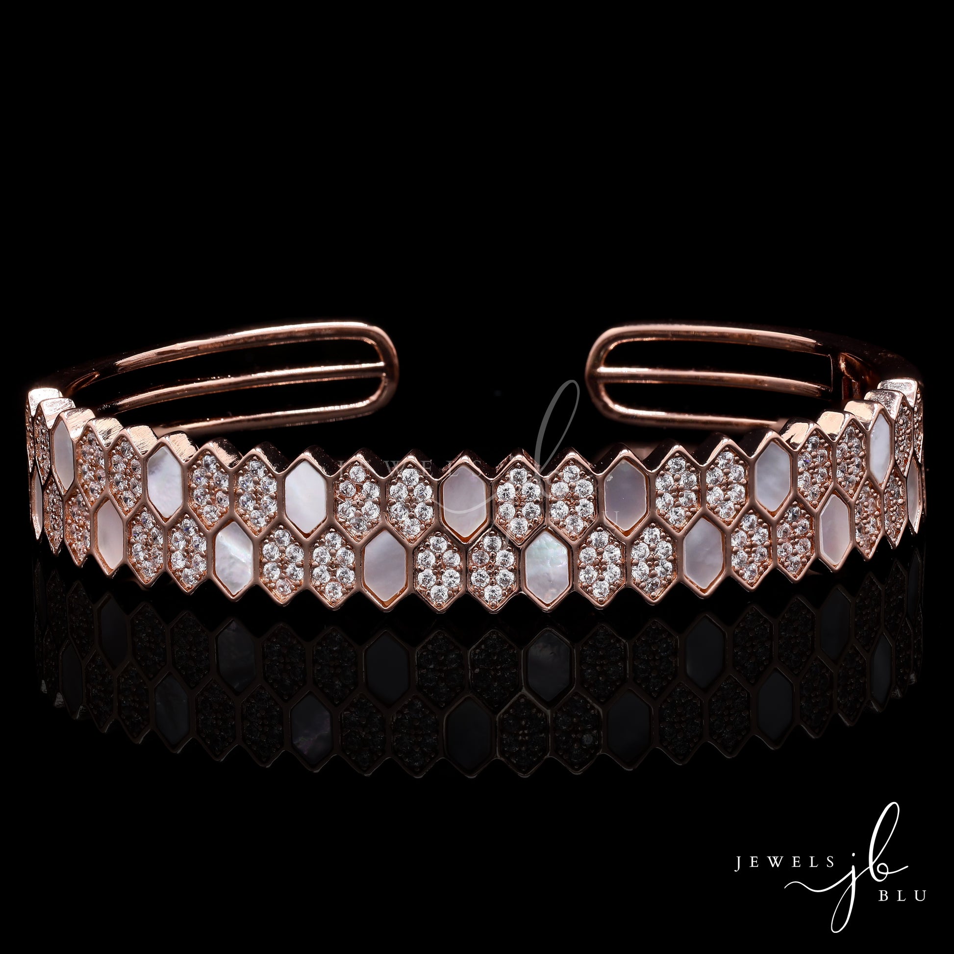 Premium Rose Gold Finish American Diamond and Mother of Pearl Hexa Openable Bracelet