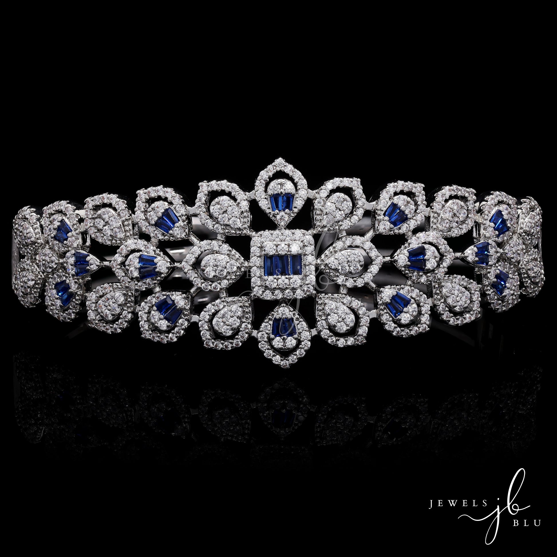 Premium Octa Setting Hydro Blue Sapphire Broad Bridal Zina Openable Kada Bracelet