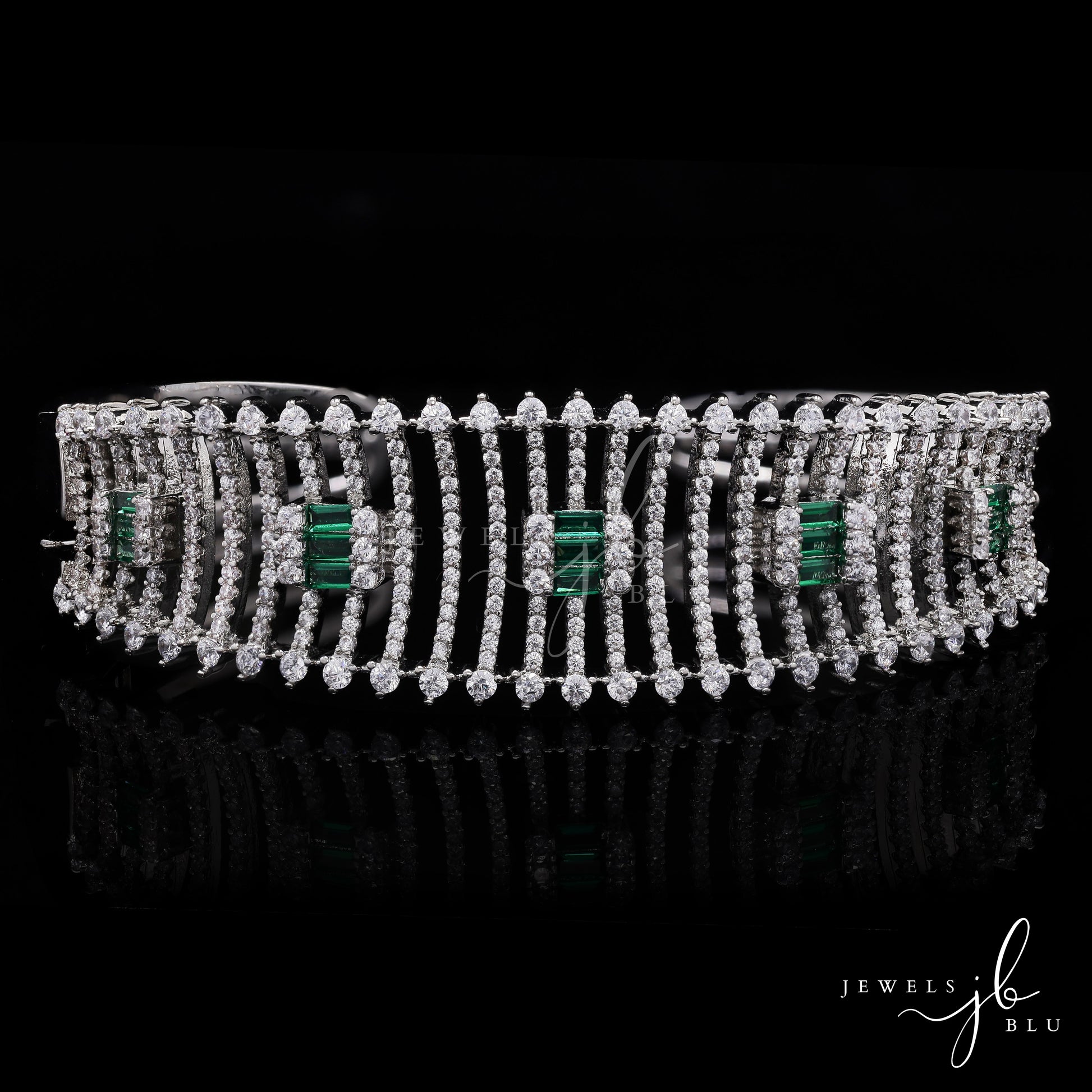 Premium American Diamond Jaal Bridal Openable Bracelet with Emerald Detailing