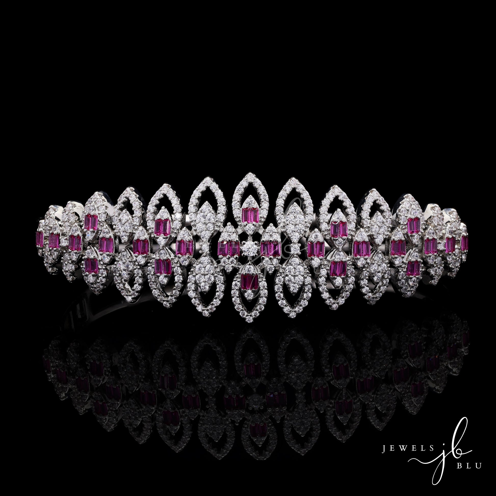 Premium American Diamond Marquise Motiff Openable Bridal Bracelet with Ruby Detailing