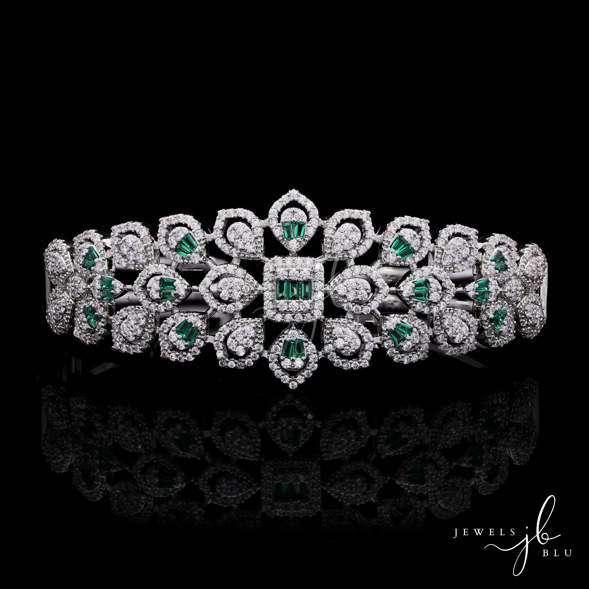 Premium Octa Setting Hydro Emerald Broad Bridal Zina Openable Kada Bracelet