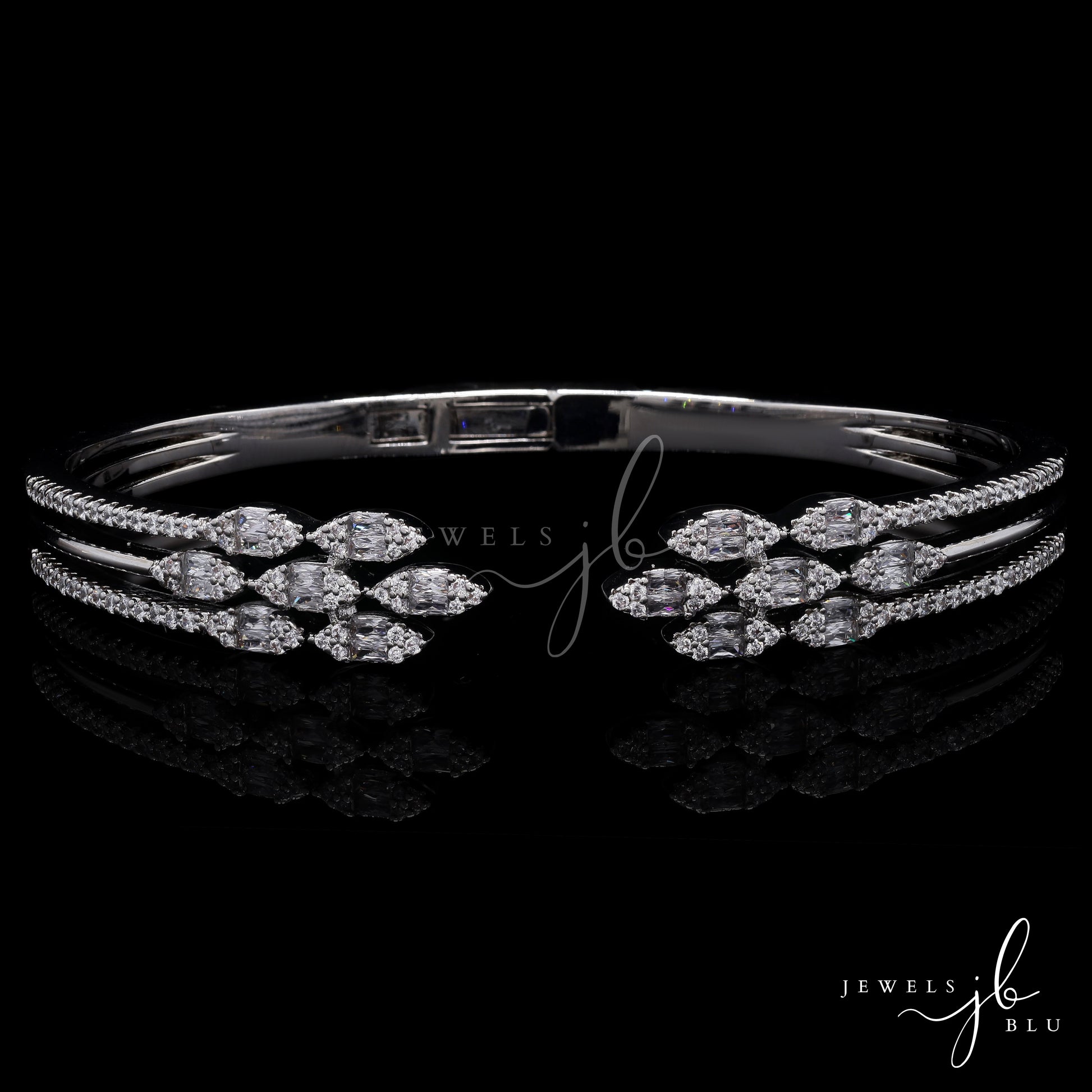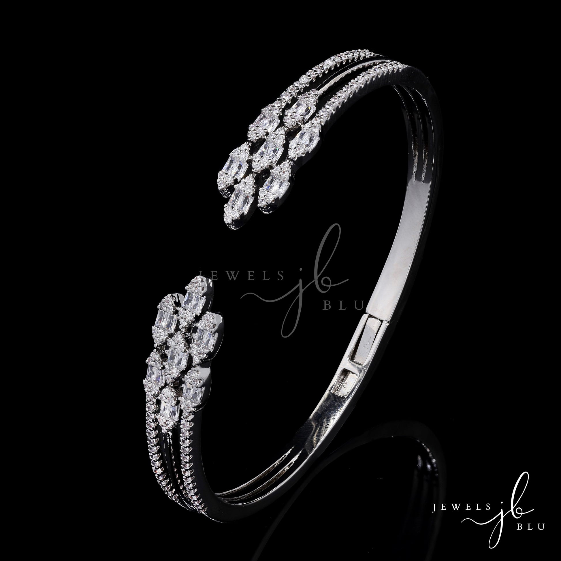 Premium American Diamond Baguette Setting Three Line Nora Openable Bracelet
