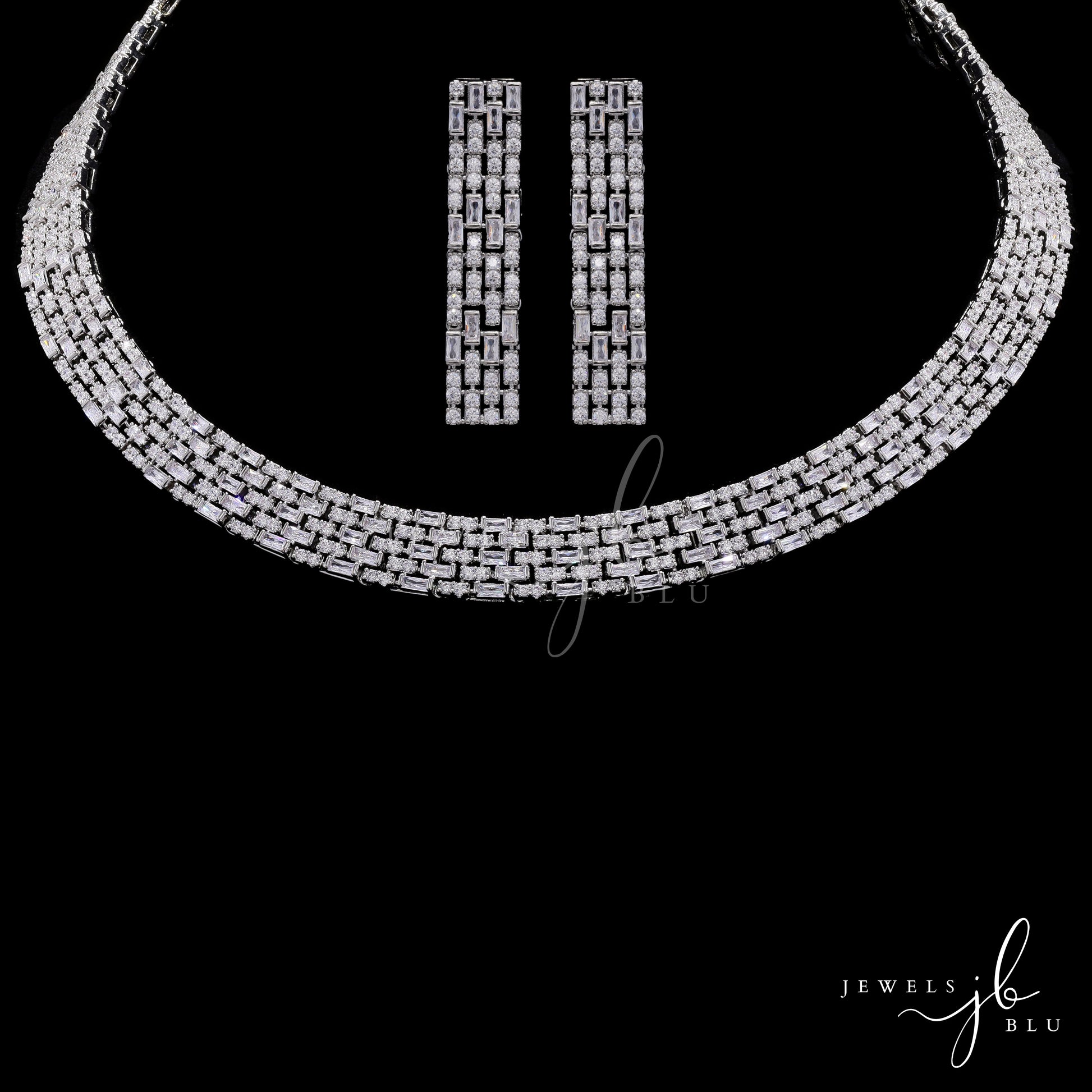 Premium Italian Baguette Setting Helina Festive Necklace Set with Earrings