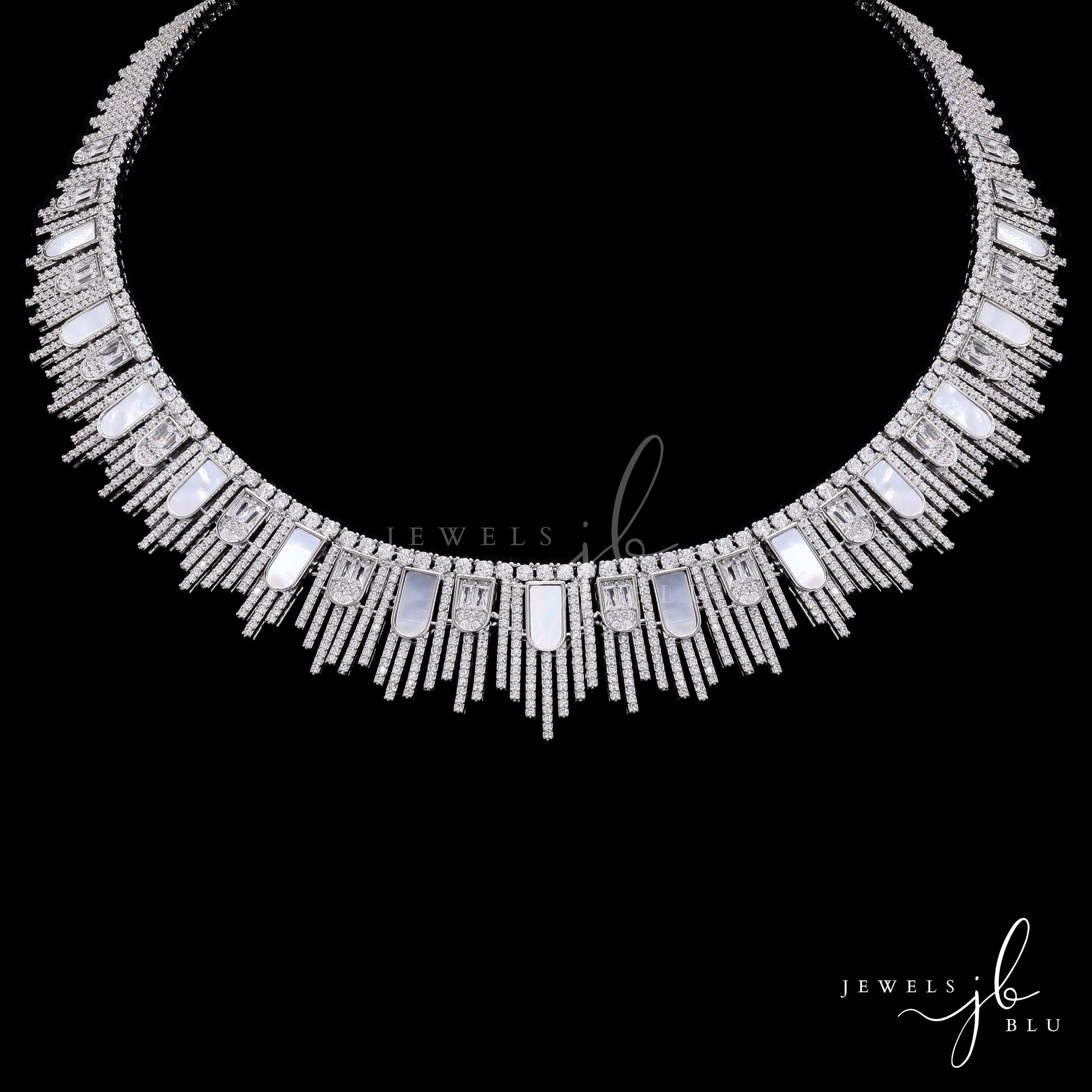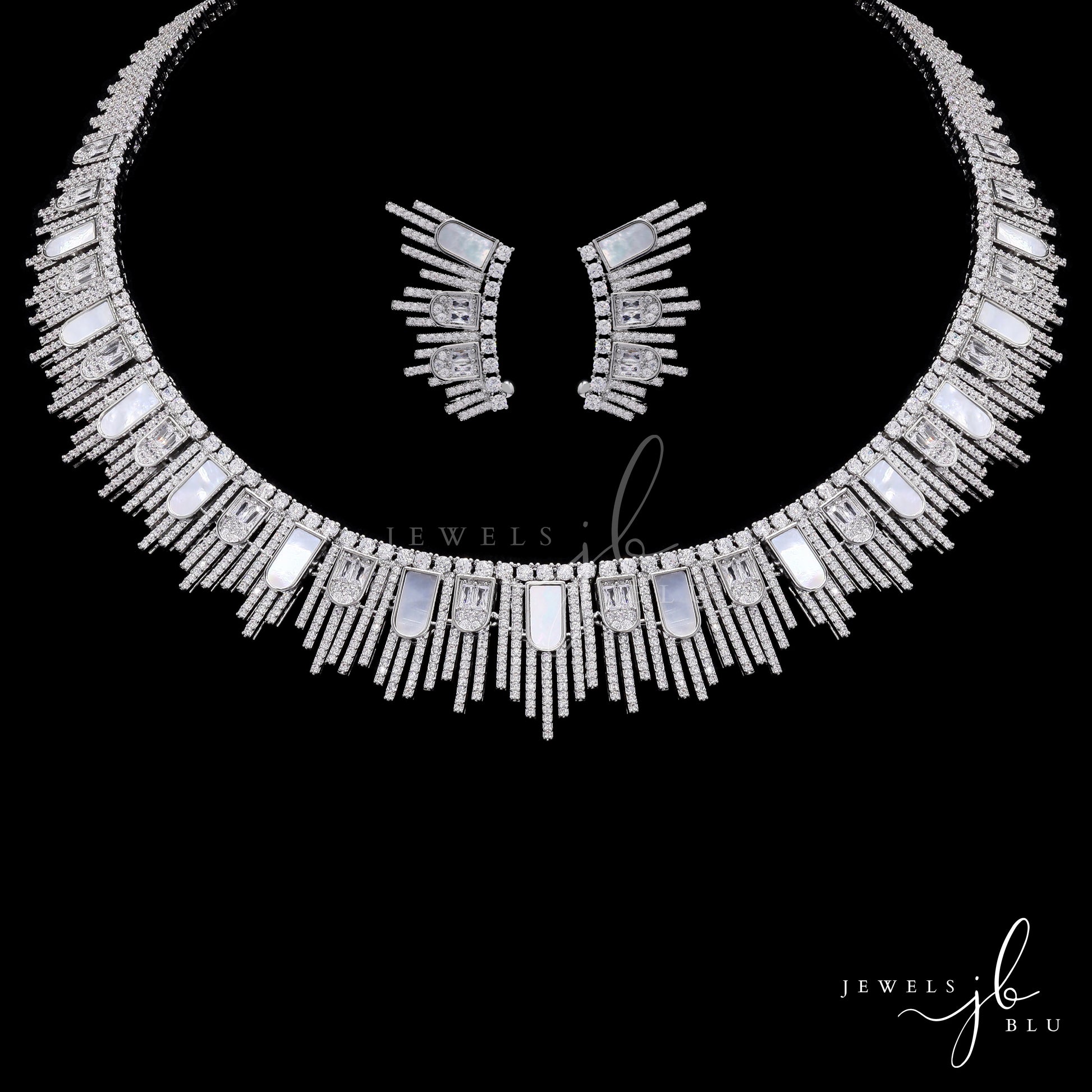 Premium Mother of Pearl and American Diamond Jonita Cocktail Necklace Set with Earrings