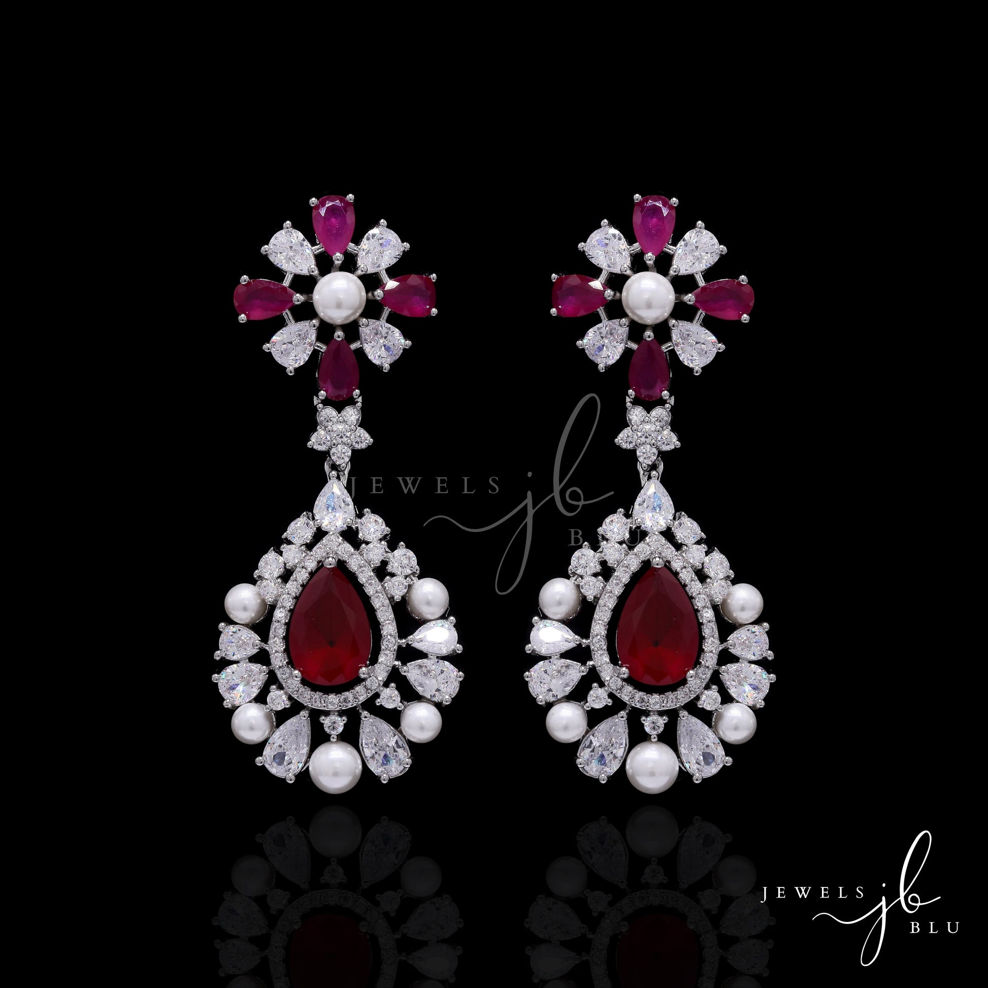 Premium Ruby Drop and Fresh Water Pearl Nytara Necklace Set with Earrings