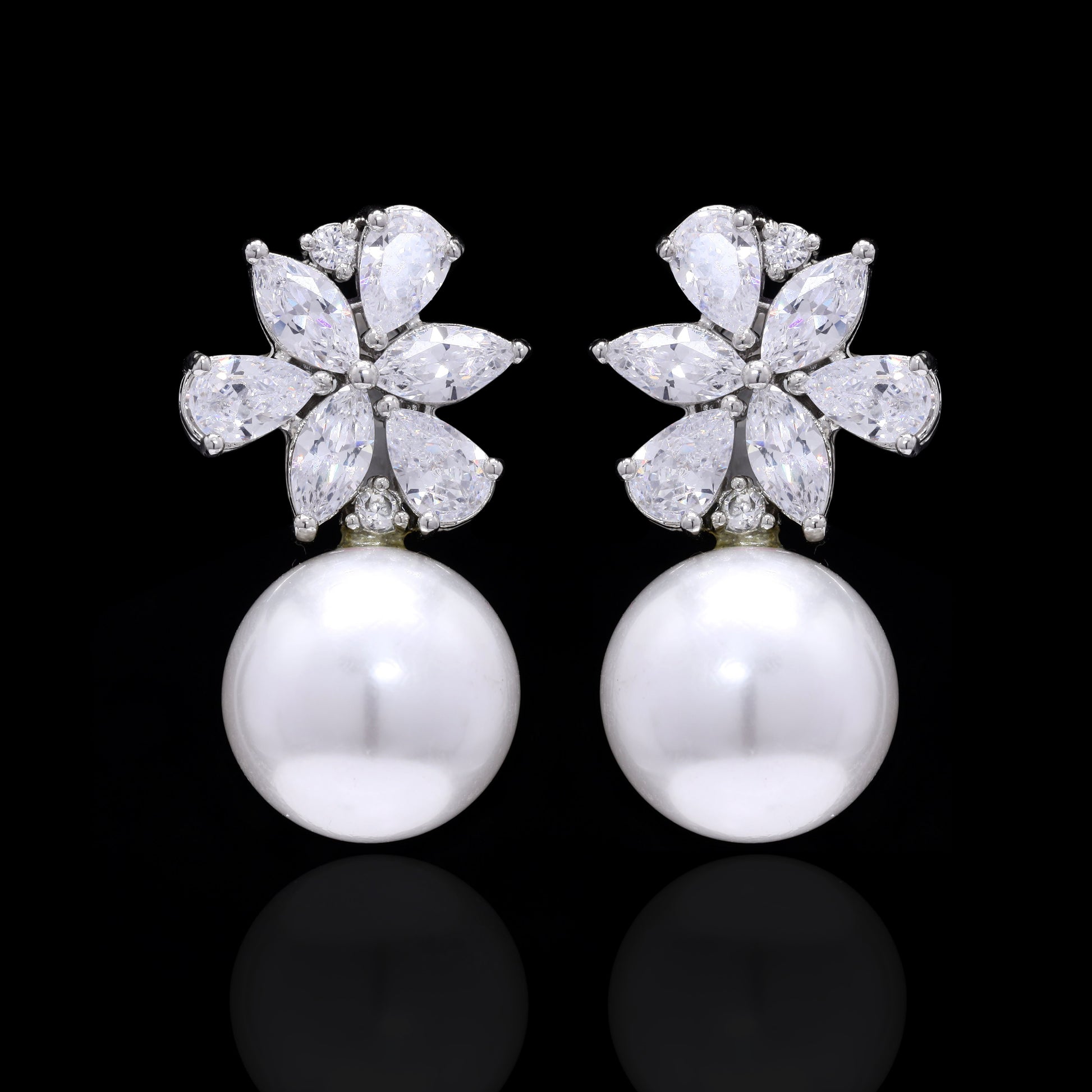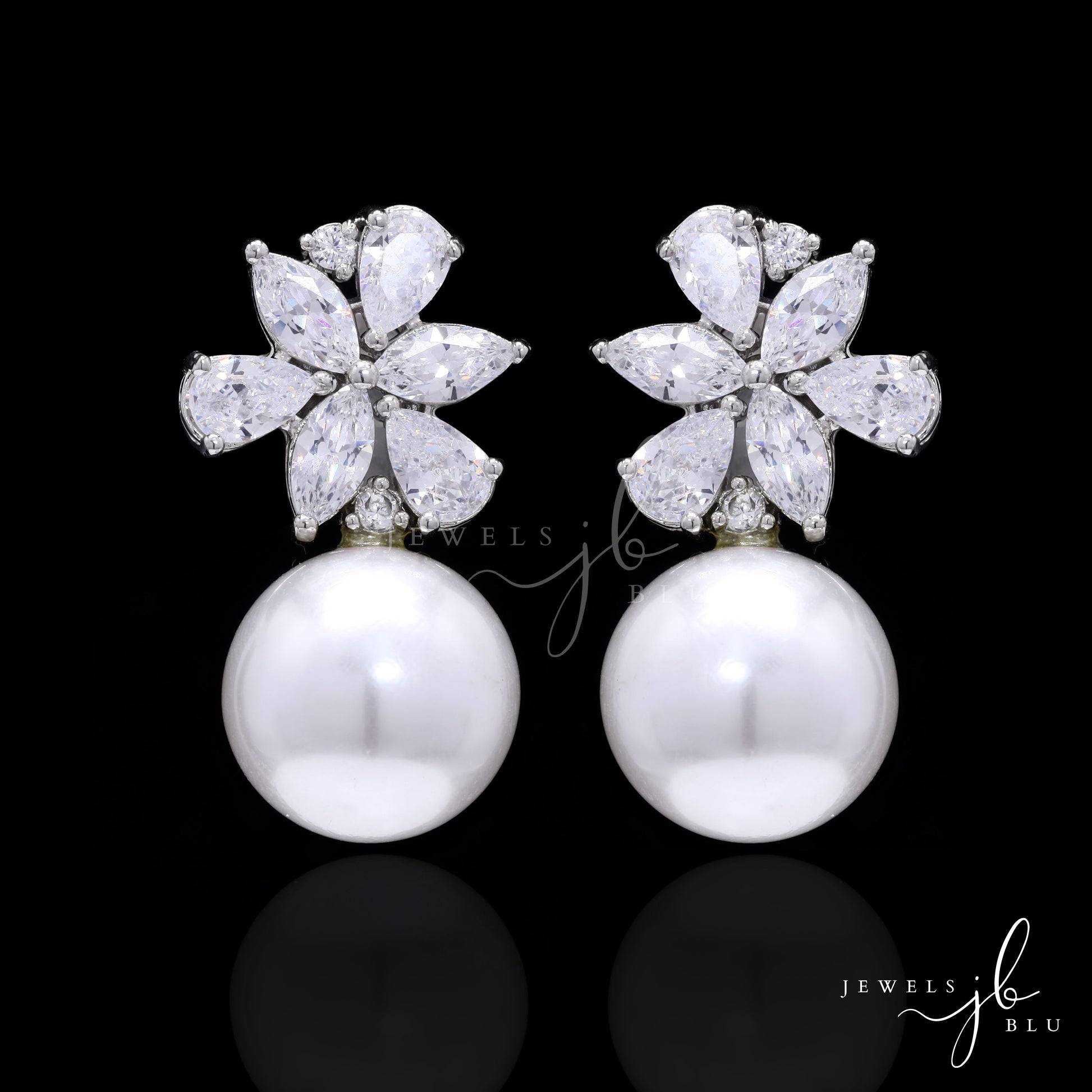 American Diamond Myra Fresh Water Pearl Party Earrings